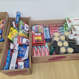 Quase duas toneladas de alimentos não perecíveis e milhares de produtos de higiene pessoal, entre eles, fraldas geriátricas, papel higiênico, lenços umedecidos, barbeadores, sabonetes, cremes e escovas dentais, desodorantes, shampoos e condicionadores.